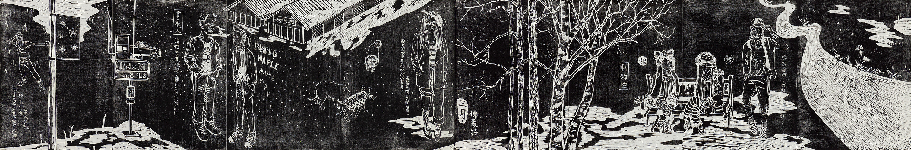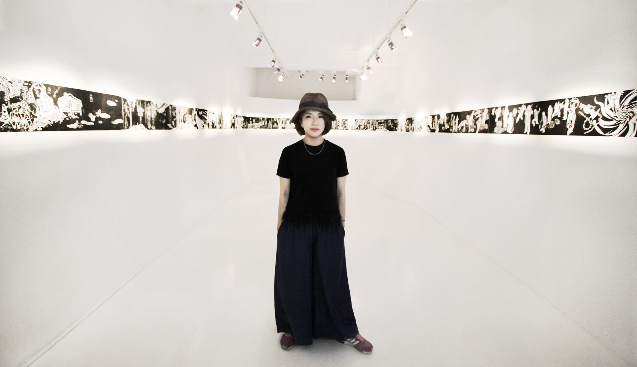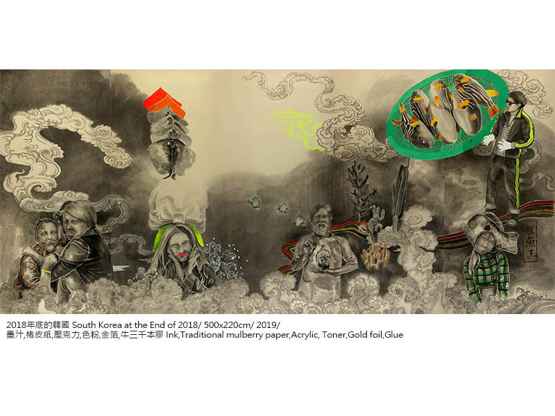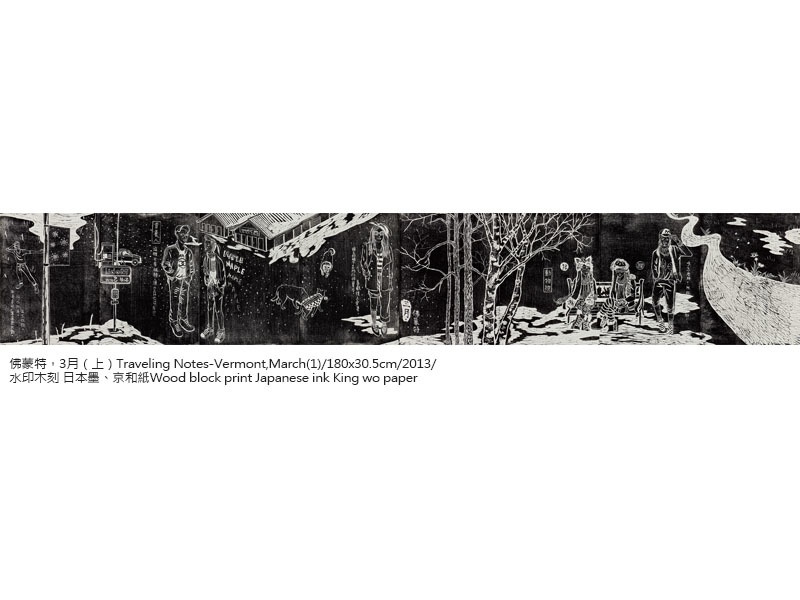 蔥蔥-黃琬玲個展黃琬玲成長於消費文化快速擴張的年代,人們藉由獨特的消費品味與活動,塑造自己的身分與認同。大學就讀於版畫組,以此現象為發想,創造以水墨為材質詮釋影像與版畫的方法,製作出具有負片效果的系列作品——《貢養人》,雜揉傳統水墨、流行符號語彙與鮮艷的顏料色彩,發展出獨特的創作語彙。2013年,工作室的一場大火,吞噬過往累積的一切,但也點燃了重新面對自己與自己對話的道路,創作轉向觀看自身,選擇以水印木刻的窄長卷畫創作《遊記》系列,對傳統材質與水墨有更深刻的掌握。《遊記》紀錄著生活的片段,將記憶集結為有敘事性的故事,其創作從圖像拓展至具敘事性的表現。 近期發展的《名所繪》系列以放射狀的透視點構成具有擴延性的視覺,向外擴散的構圖方式,形成沒有消失點的風景繪畫,以此呼應多點透視的文人繪畫,提出對風景繪畫的再思考。黃以膠描繪線條結構,再使用破碎、殘影、拓踏的方式,重新構築繪畫圖像與空間,混沌濕潤的筆觸與影像的層層堆疊,繪出一幅幅空氣、濕度流轉於紙上的場景。如同作品中展現的瞬息被畫筆勾勒成凝結的記憶,地景物件將隨著時間更迭嬗變,但在土地上孕育而生的文化卻能夠透過傳承而續存。 「蔥蔥」草木蒼翠茂盛的樣子,象徵著這片土地豐沛的生命能量以及爆發的文化狀態,也是黃琬玲腦海中靈感的縮影,美好而蓬勃。漫步在開放與直觀之間,不囿限於媒材的屬性與歷史,也不固著於技巧的雕琢,伴隨著自己的生命經驗,黃琬玲希望能劃開了一條路徑,探尋平面繪畫如何重新創造不可取代的生命力。 從制高處回望與前瞻——記黃琬玲靜宜個展Looking Back While Gazing Ahead From a High Vantage Point–HUANG Wanling Solo Art Exhibition Notes文\靜宜大學藝術中心主任 彭宇薰 by Yushun Elisa Pong, Director of Art Center, Providence University 必須冒險,注定叛逆,天生特立獨行——黃琬玲藝術創作之途,雖顛簸坎坷,卻始終如一。從二十幾歲初出道的《貢養人》水墨系列開始,她就以其獨特的「生猛氣質」昭告一己獨特的存在性;後來以風景為主題的《遊記》版畫系列,乃至最近的《名所繪》水墨系列,則可見其在生活、歲月的淬煉下,與藝術創作本身的自我對話,並披露其拓展格局與深化省思的發展軌跡。我們很高興在琬玲近四十而不惑之際,為她的藝術事業留下一個重要的見證。 As a rebel with a constant craving for adventure, Wanling Huang’s career in art may have been rough and bumpy, yet it has always remained consistent with her individualistic tendencies. Starting with her debut series of ink paintings titled, Gong Yang Ren, in her early twenties, she has been proclaiming her unique existence with a distinctly fierce temperament. Her later scenery-based print series, Traveing Notes, and more recent Meisho-E ink paintings serve as examples of her dialogue with art crystallized by life experience and the passing of time. The works also reveal traces of development in framework expansion and intense self-reflection. We are happy to bear witness to her artistic career as she approaches 40, an age without ambiguity. 生命能量的觀點來看,琬玲是一個強大的變動不居能量之承載體,她既具有敏銳的直覺性,也擁有極高的願景。由於其火能量非常旺盛,故早期的作品外向粗放,這種向上飛揚、盡情揮霍的年少青春,以及不多加修飾的「魯莽」直接性,終需要放慢沉澱,化為更富內聚力的曄然華光。這些年來,琬玲隨著生命能量的調整,遊走在版畫與水墨之間:版畫雖然耗時費工,然正好內斂其烈焰,收束其心志,但真正說來,她更需要一種處於制高點的宇宙性視野探勘與揮灑,因此具備高度自由性、一落筆即無可回顧的水墨創作,終究成為其理想的大格局作品之表現媒材。然而,大格局所需的深厚內涵,才是隨之而來必不可免的卓絕挑戰,這是琬玲生命必然要面對的另一波浴火鳳凰的戰鬥。 From the perspective of life, Wanling is a powerful conveyor of ever changing energy, employing a keen intuition along with an exceedingly grand vision. She has so much fiery passion that her earlier works can be considered exuberant and unrefined. This type of high-flying, audacious sense of youthfulness and unpolished, reckless straightforwardness all settle down eventually to transform into a cohesive brilliance. Over the years, Wanling has transitioned between print-making and ink painting as life energies realign themselves. Print-making is time-consuming and labor-intensive, but it is also the perfect tool to restrain her passion and rein in her aspirations. Realistically speaking, she needs a universal visual exploration and expression from a commanding vantage point. Thus, ink painting, which offers a high degree of freedom and the characteristic of “no going back” once the pen is engaged on paper, serves as the perfect medium for her ideal large-scale works. However, the solid inner qualities required by large-scale works are unavoidable challenges of excellence faced by Wanling in yet another wave in her crucible. 爰此,琬玲的社會關照從早先的次文化現象,轉向更為廣泛的多元文化比較與觀察。晚近以來,她在美國、韓國、日本等地的藝術駐村經驗,毫無疑問帶來了豐富的滋養,並刺激她對於本土的傳統文化,別有意識地再進一步思考與領會。琬玲宛若一位拓荒者,試圖潛入人類集體潛意識中,挖掘出殘渣或寶物,創意性地指向未來;她需要階段性地沈潛在直覺與理性思考中,消化她在世俗或神話世界裡,接收各種或可名、或不可名的訊息,並與自己強烈的